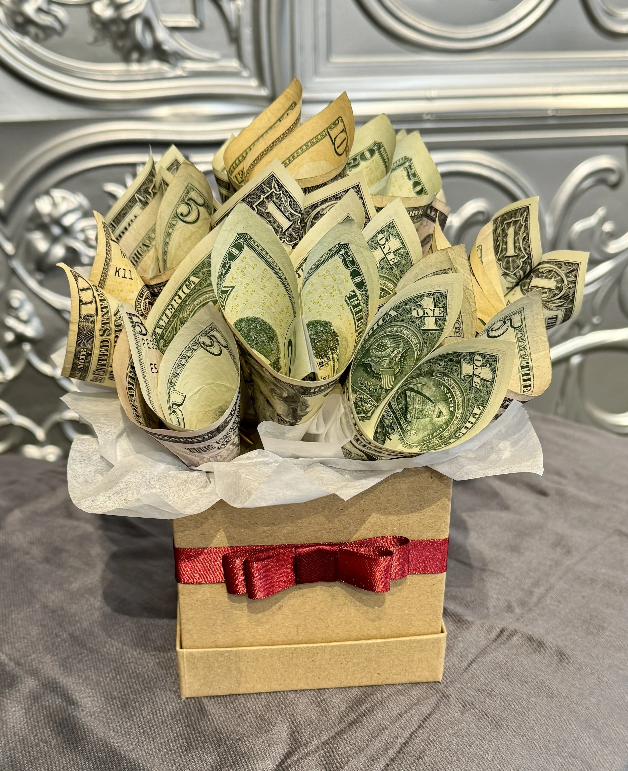 Money In A Box starts at $35. (money not included). All orders are prepaid only.